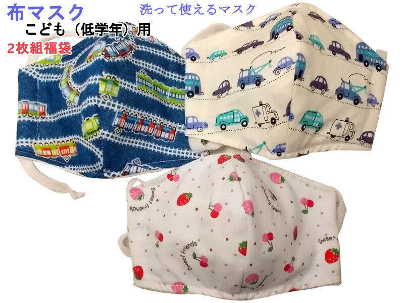 ◆布製の洗えるこども用マスクの2枚組セットを数量限定福袋特価で販売しております!送料無料! ◆品切れ時は予約受付(納期は5日から10日間)予約受付中 ◆同種の4枚組福袋こちらで出品しております ◆幼児、低学年用サイズのマスクです。