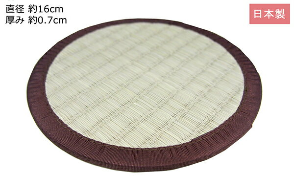 商品詳細サイズ直径約16cm/4枚組材質表面:中国産い草100% 中材:中国産い草100% 裏面:ポリエチレン発泡シート(evaフィルム貼り(滑りにくい加工)) 縁:ポリエチレン・ポリプロピレンカラーブラウン生産国日本備考【お取り扱いについて】 ■滑りやすい床面でのご使用は、お避けください。